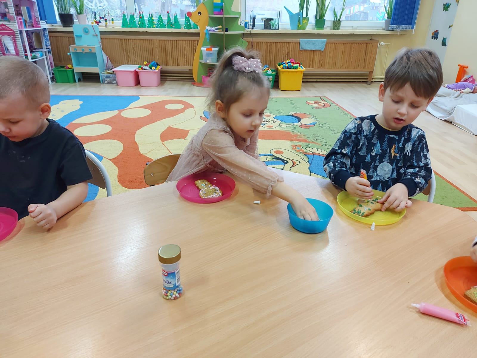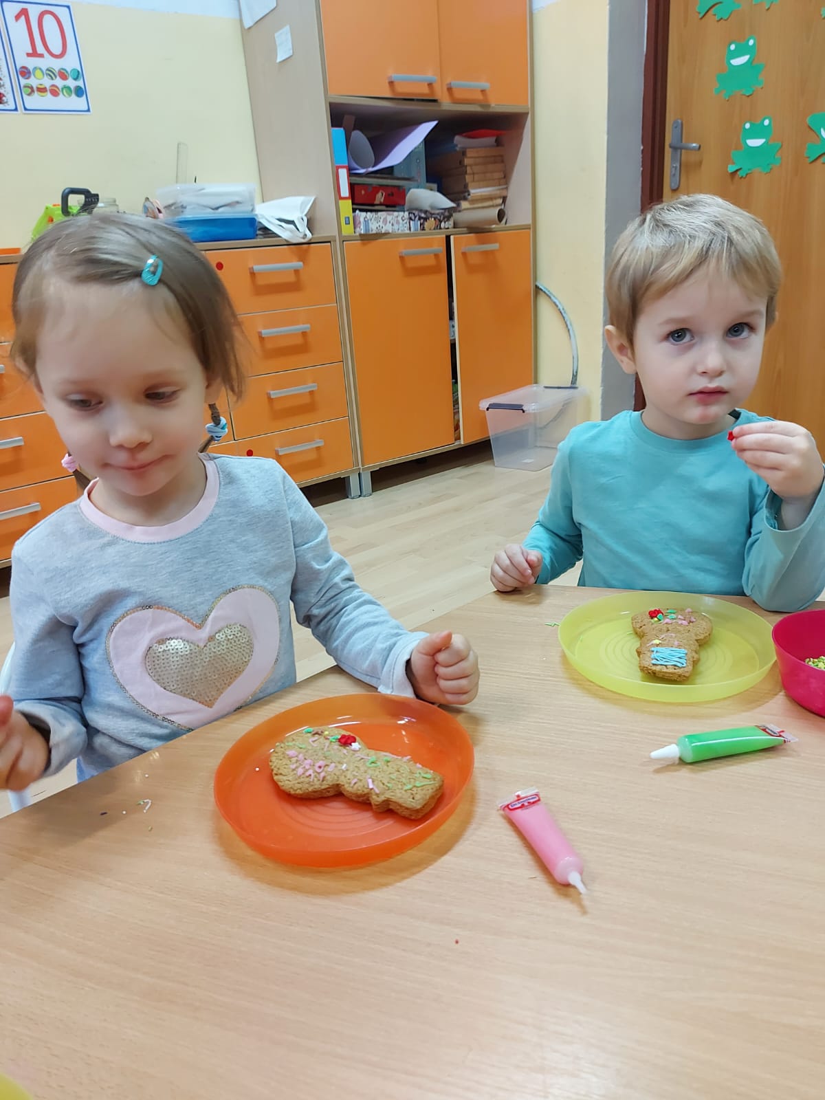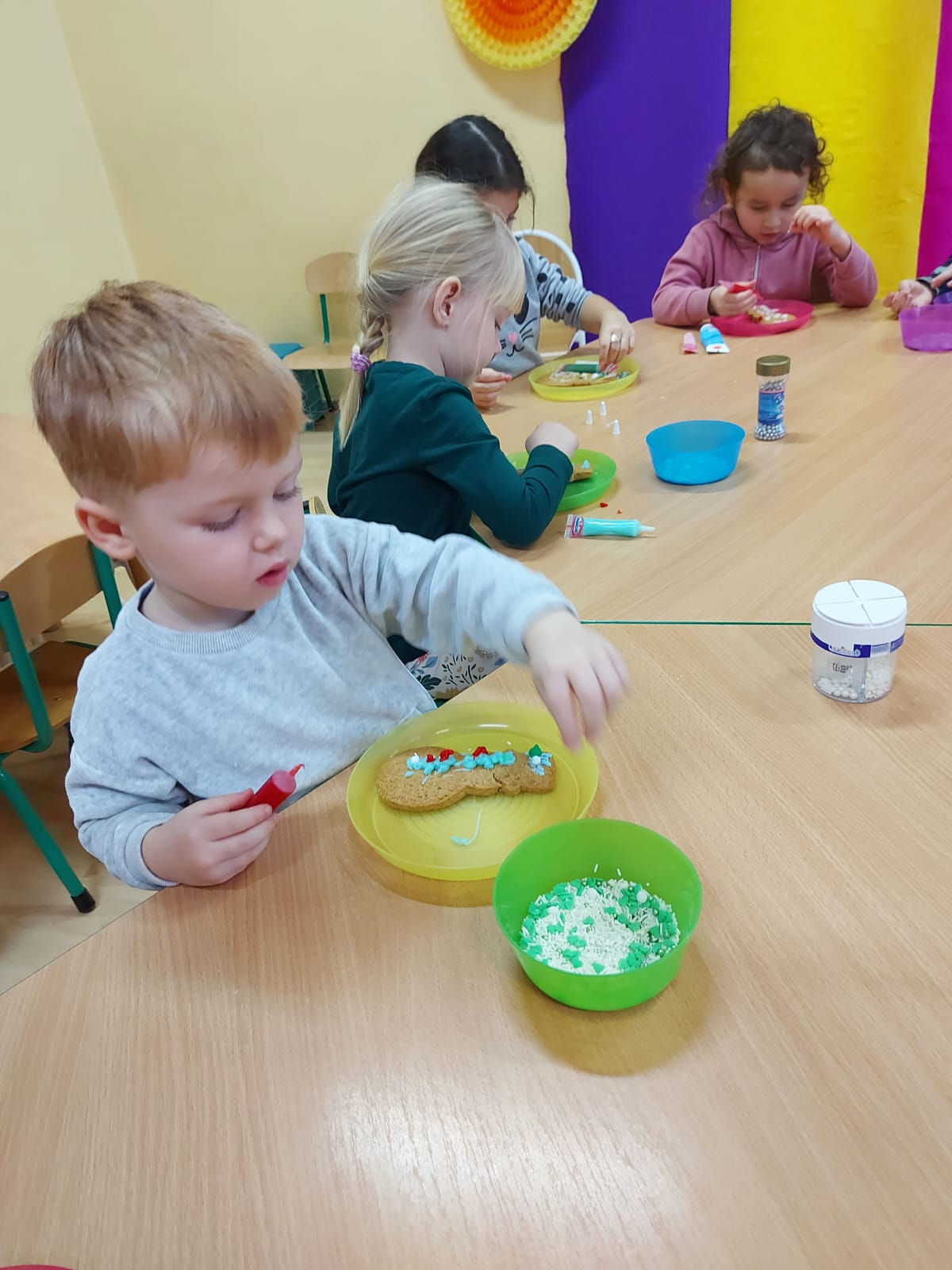 Dzieci z grupy Żabki ?powoli zaczynają przygotowania do świąt .?W dniu wczorajszym ozdabiały pachnące pierniczki⛄