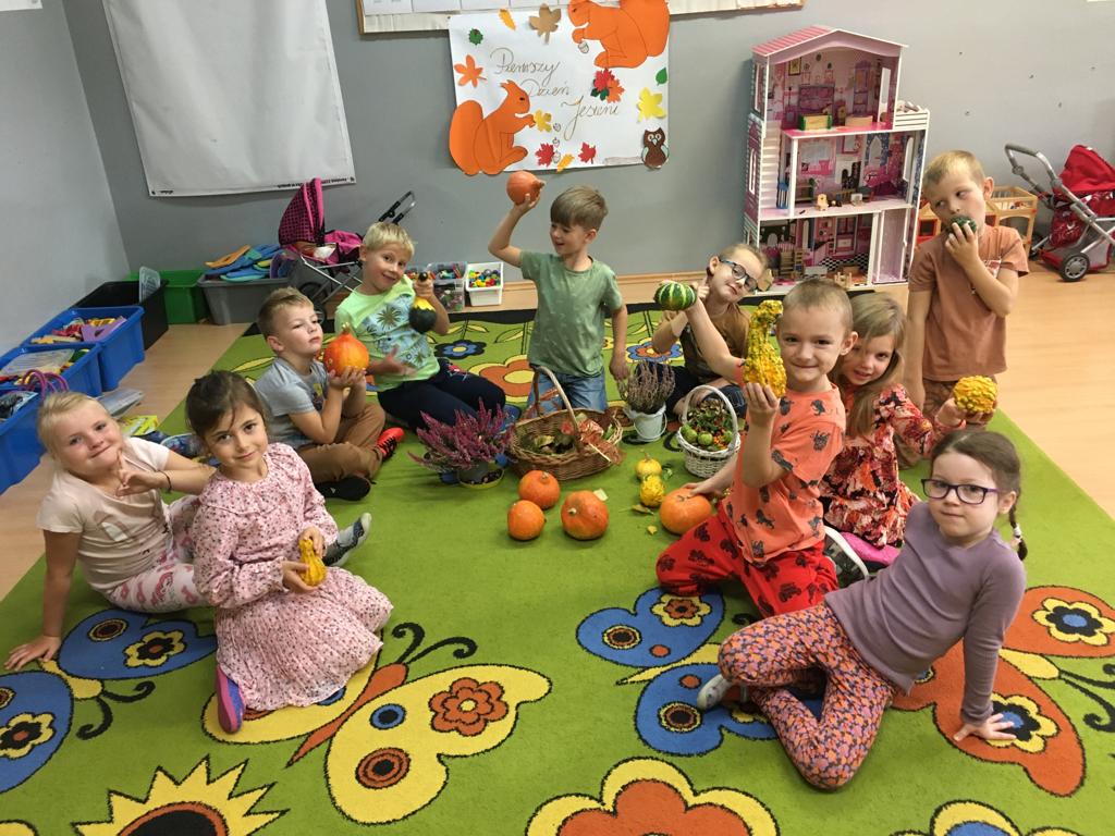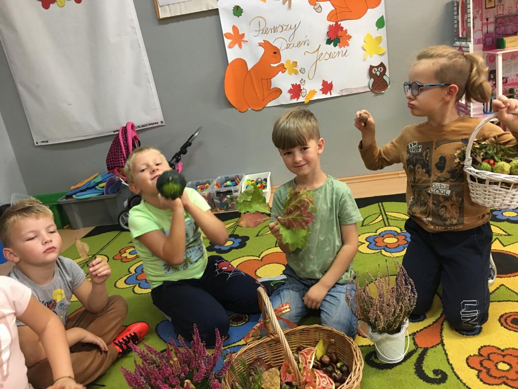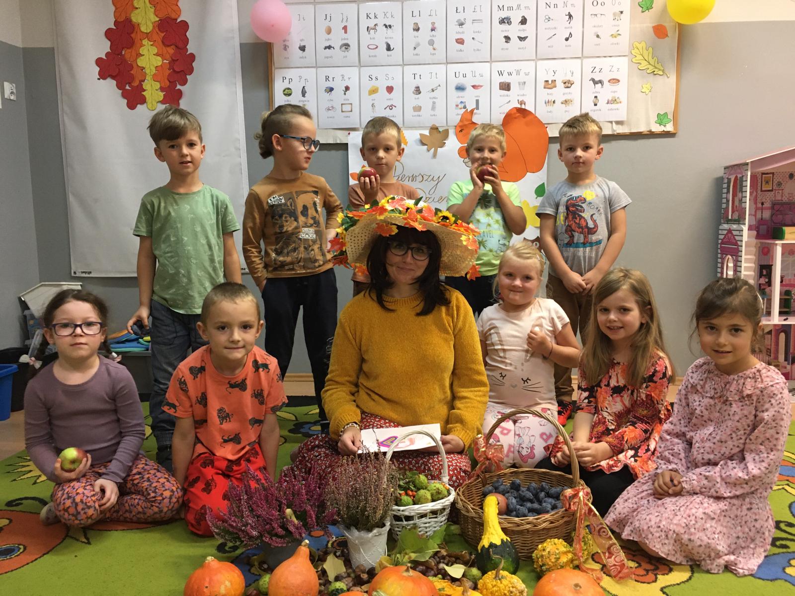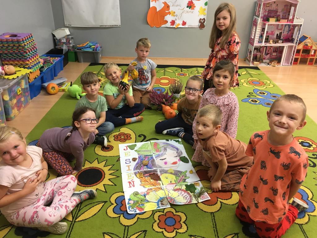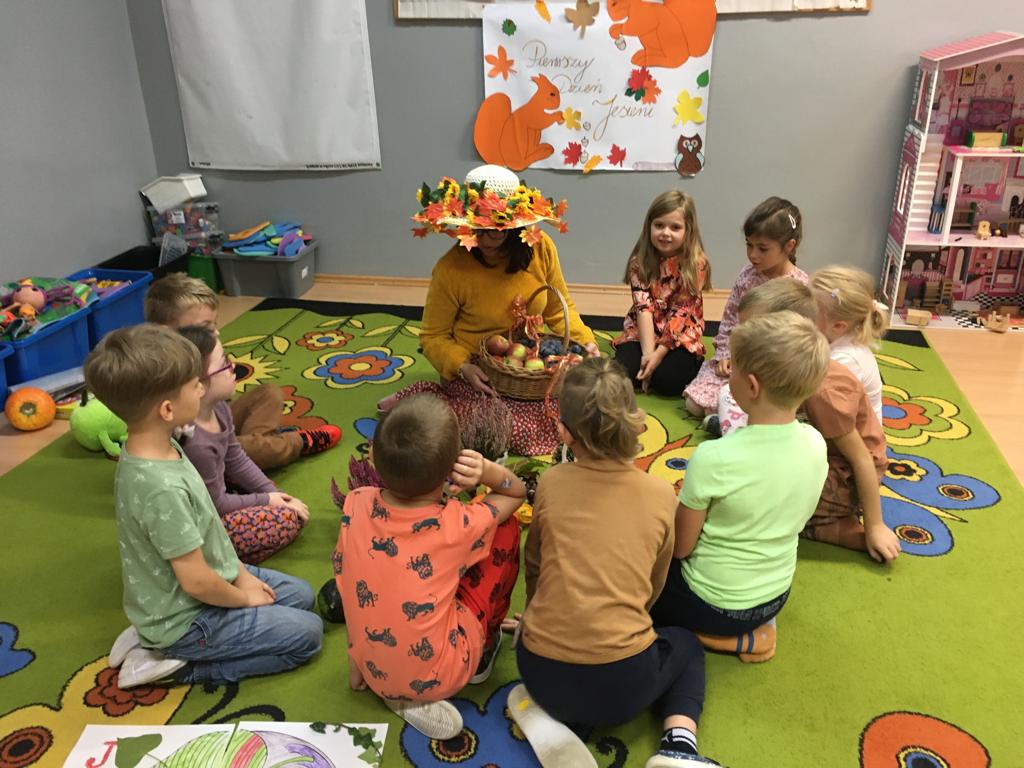 wszędzie na drzewach owoc już dojrzał…. Dzieci z grupy 🦋🦋🦋 przywitały Panią Jesień.