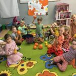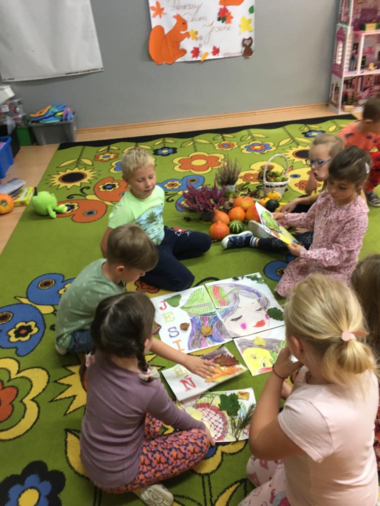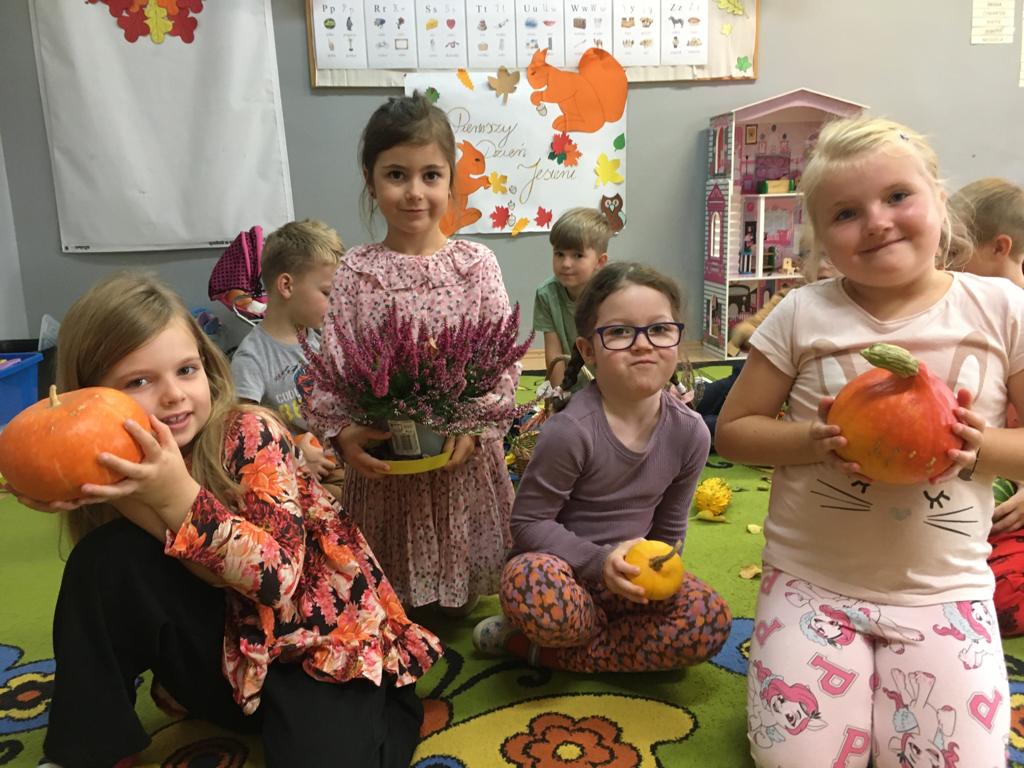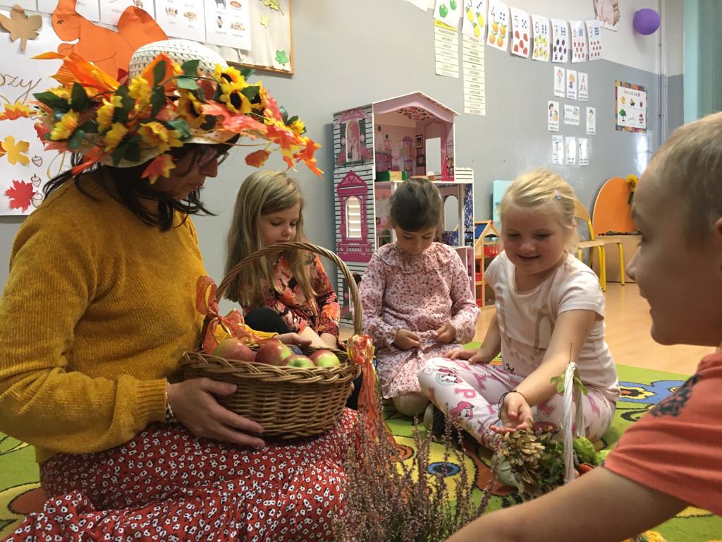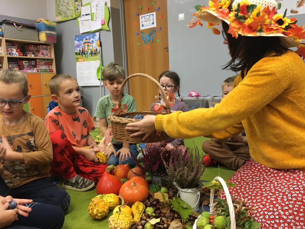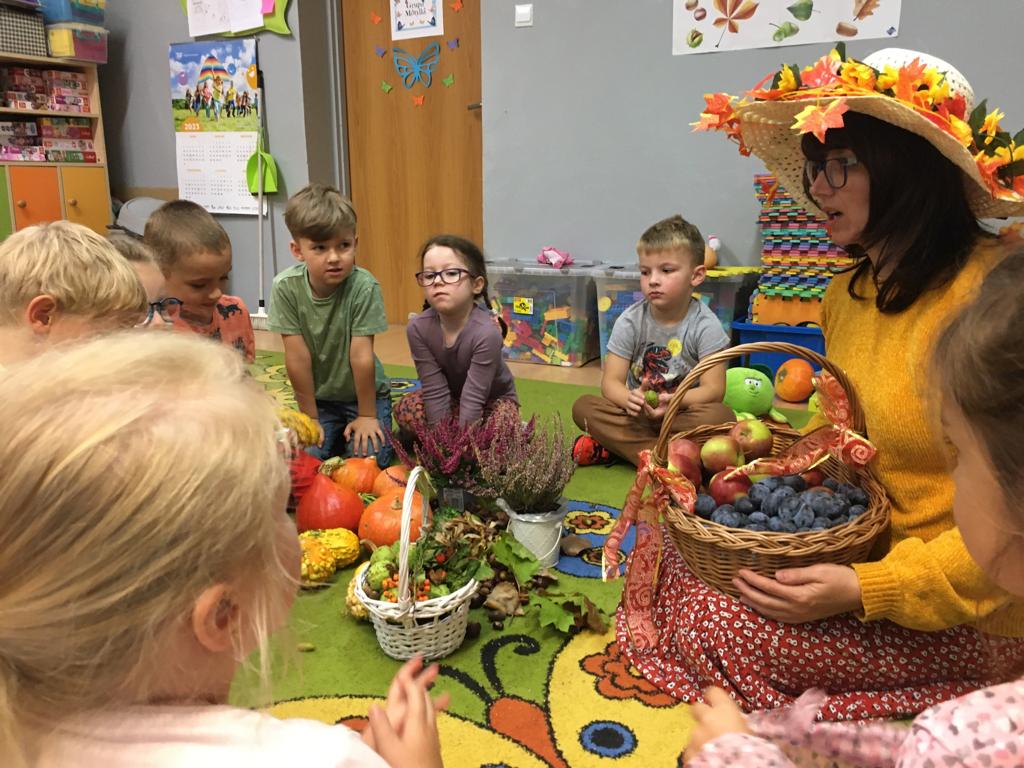 wszędzie na drzewach owoc już dojrzał…. Dzieci z grupy 🦋🦋🦋 przywitały Panią Jesień.