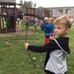 Dzieci z grupy Motylki biorą udział w Ogólnopolskim Projekcie Edukacyjnym „Z darami natury świat nie jest ponury”. Głównym celem projektu jest kształtowanie postaw ekologicznych, pobudzenie kreatywności dzieci i nauczycieli oraz rozbudzenie wrażliwości na piękno przyrody. Przedszkolaki wykonały pierwsze zadanie: „Łuki i strzały”.