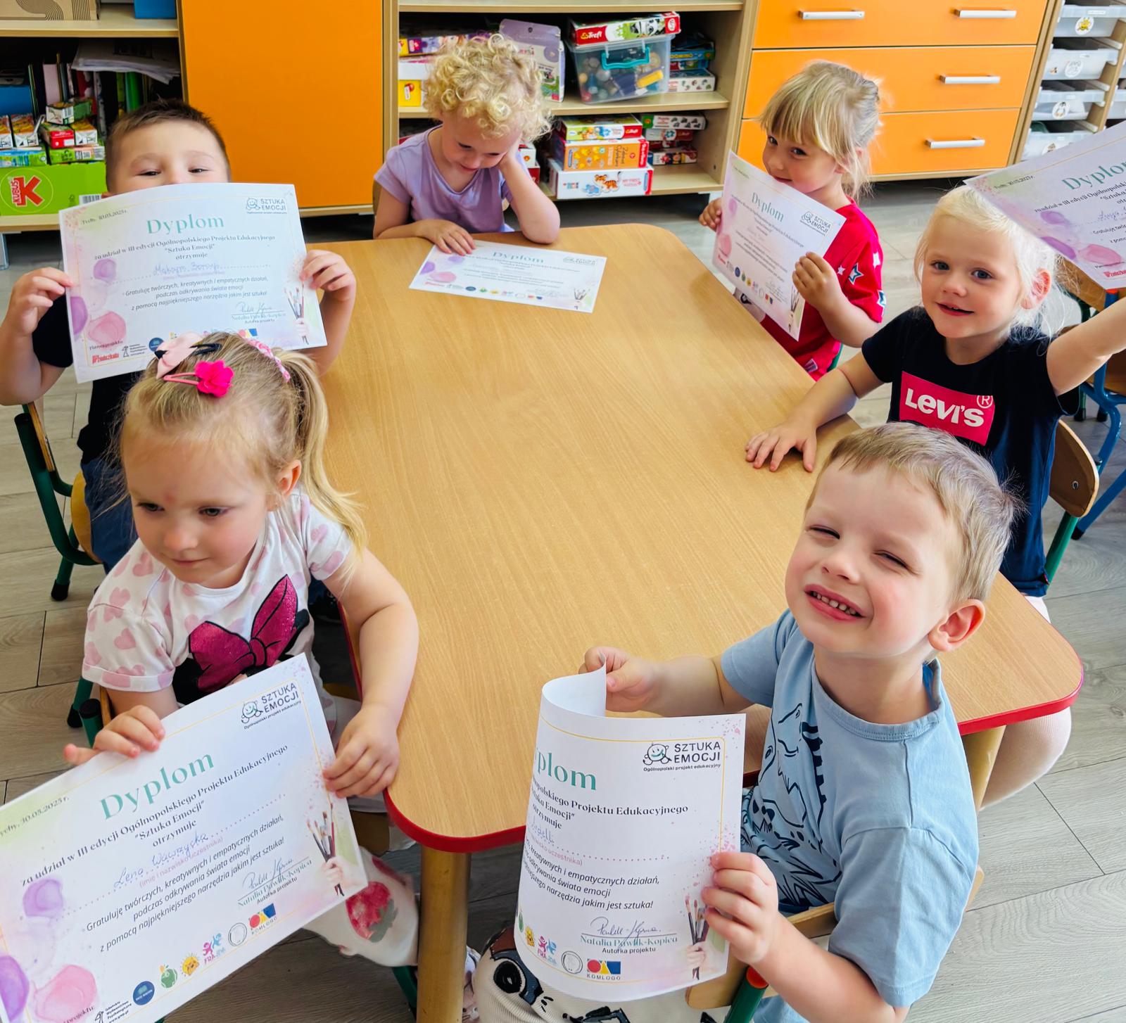 Udział w zajęciach był pełen radości, zabaw oraz kreatywnych wyzwań, a dzieci chętnie dzieliły się swoimi przeżyciami i doświadczeniami z rówieśnikami. Otrzymane dyplomy są symbolicznym podziękowaniem za zaangażowanie i aktywny udział w edukacyjnej przygodzie ze światem emocji.