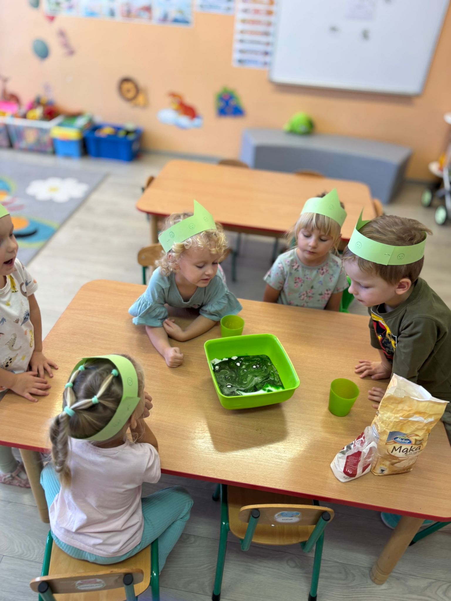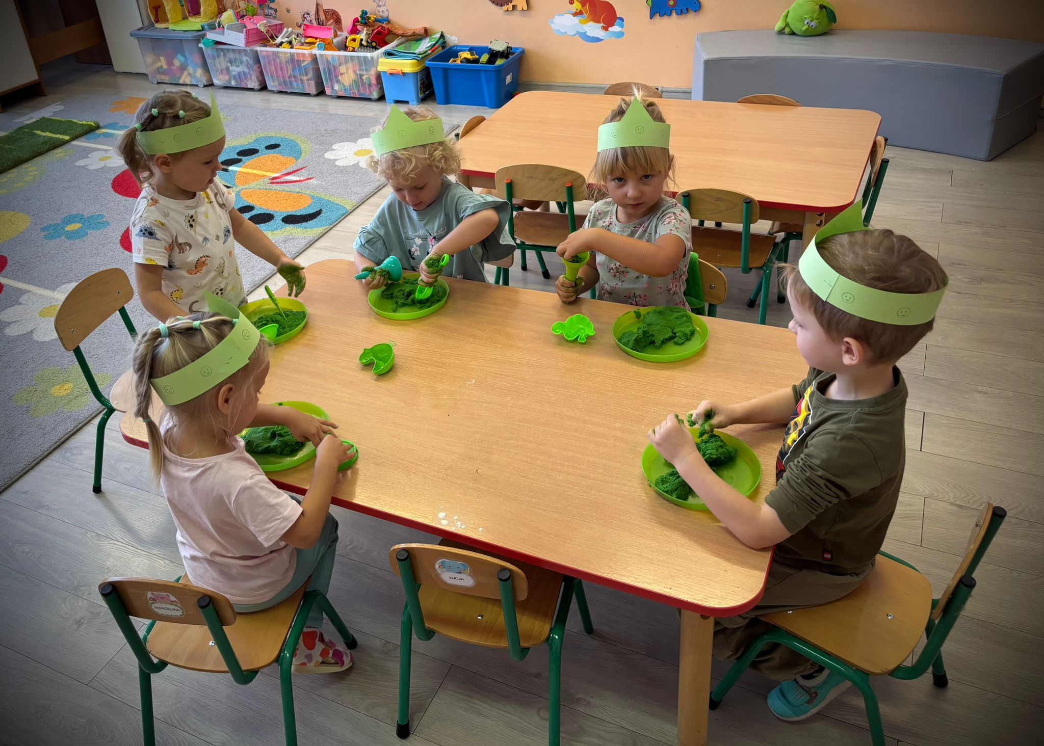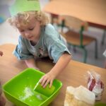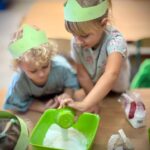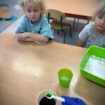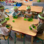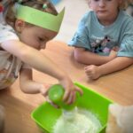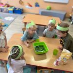 W tym miesiącu przedszkolaki zapoznały się z kolorem zielonym – poznawały przedmioty, zabawy i doświadczenia sensoryczne związane z tym kolorem. Dzięki temu dzieci mogły rozwijać spostrzegawczość, kreatywność oraz zdolności poznawcze w przyjaznej i angażującej formie.